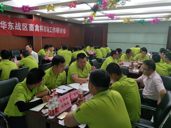 6月3日-4日,通威股份華東戰(zhàn)區(qū)畜禽料市場(chǎng)工作研討會(huì)在南通巴大寶鼎生物飼料有限公司(以下簡(jiǎn)稱(chēng)巴大寶鼎)成功召開(kāi)。通威股份副總裁兼華東戰(zhàn)區(qū)總裁王尚文,巴大寶鼎總經(jīng)理王星君,無(wú)錫通威總經(jīng)理范小敏出席會(huì)議。無(wú)錫通威、巴大寶鼎兩家公司畜禽料市場(chǎng)體系人員參加會(huì)議,大家圍繞當(dāng)前畜禽料市場(chǎng)發(fā)生的深刻變化和當(dāng)下如何破冰突圍進(jìn)行了交流與研討。