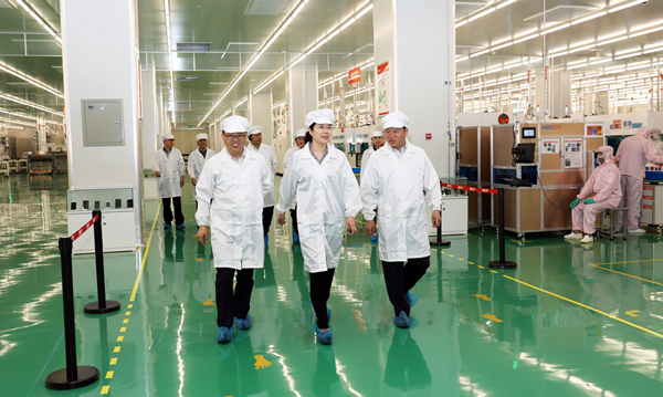 隨后,考察團一行實地參觀了通威太陽能(成都)有限公司S1電池車間,詳細了解了通威太陽能電池片的生產(chǎn)工藝流程、產(chǎn)能情況和設(shè)備使用情況。考察團一行對S1車間高效的現(xiàn)場管理和高度自動化的設(shè)備設(shè)施給予了高度評價,希望蘇川兩省共同努力,將區(qū)域協(xié)同發(fā)展推向更深層次、更高水平。