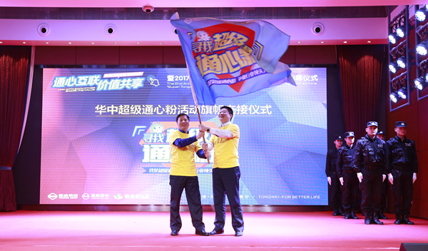 通威股份副總裁兼華中一區(qū)總裁沈金竹、通威股份華中二區(qū)總裁幸鵬接過“2017尋找超級通心粉”活動大旗