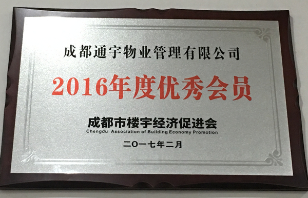 成都通宇物業(yè)管理有限公司榮獲“成都市樓宇經(jīng)濟(jì)促進(jìn)會優(yōu)秀會員企業(yè)”