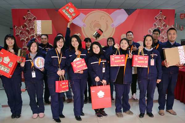 與此同時,成都公司豐富的新春禮品包,喜氣洋洋的祝福展板讓整個廠區(qū)溫情滿滿,喜悅多多。蘋果與橙子拼成的水果大禮包,寓意著 “橙意滿滿,蘋蘋安安”,光是這份用心就足夠感動大家。此外,甜甜的巧克力、精心包裝的堅果大禮盒更是讓驚喜一波接著一波。