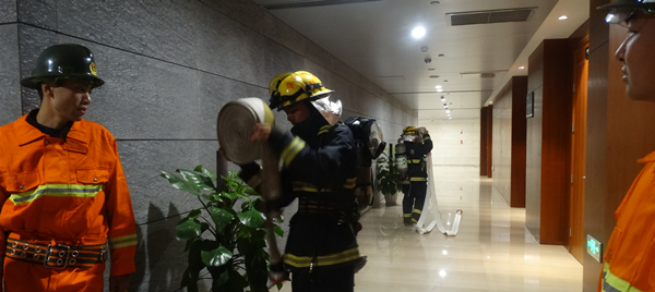 下午3時,隨著國際中心監(jiān)控中心響起消防警報聲,秩序巡邏員楊超前往現(xiàn)場查看火警情況,確認火情后報監(jiān)控中心,現(xiàn)場已確認為廚房燃氣泄漏引起報警;一邊利用就近滅火器滅火,一邊匯報給監(jiān)控中心值班人員,監(jiān)控中心立即使用對講機通知部門經(jīng)理,部門經(jīng)理立即將情況上報物業(yè)公司總經(jīng)理,成立臨時滅火指揮部,救援總指揮孫總發(fā)出滅火指令,要求各部迅速到達責(zé)任區(qū)域,啟動大樓消防應(yīng)急預(yù)案,開始滅火救援!確認火情無法得到有效控制,監(jiān)控中心立即啟用應(yīng)急廣播進行人員疏散和安撫,報119火警中心及急救中心,119消防車在警戒組的指引下趕到現(xiàn)場,迅速找到消防取水處,采取滅火措施,經(jīng)過一番努力火勢得到了有效控制并逐步熄滅。