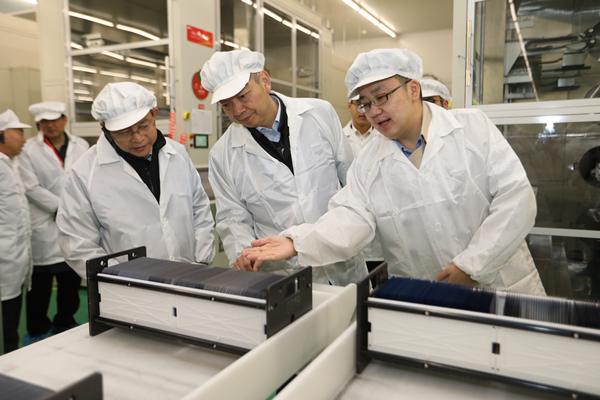 王主任一行先后參觀了永祥股份、通威太陽(yáng)能(成都)有限公司。在永祥股份,王主任一行詳細(xì)了解了永祥股份發(fā)展歷程及其經(jīng)營(yíng)發(fā)展中重要?dú)v史性轉(zhuǎn)折點(diǎn),段雍董事長(zhǎng)向王主任一行介紹了永祥股份在科技創(chuàng)新、循環(huán)經(jīng)濟(jì)產(chǎn)業(yè)鏈打造及標(biāo)準(zhǔn)化推進(jìn)、管理提升等方面取得的成果。在通威太陽(yáng)能(成都)有限公司參觀期間,王主任參觀了S1電池車間,詳細(xì)了解了電池片生產(chǎn)技術(shù)及生產(chǎn)工藝流程,謝毅董事長(zhǎng)向王主任一行詳細(xì)介紹了雙流5GW高效晶硅電池項(xiàng)目建設(shè)投產(chǎn)、產(chǎn)能規(guī)模、公司團(tuán)隊(duì)等情況。