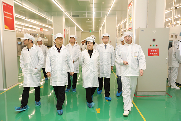 劉漢元主席陪同包瑞玲部長(zhǎng)一行參觀S1電池生產(chǎn)車間