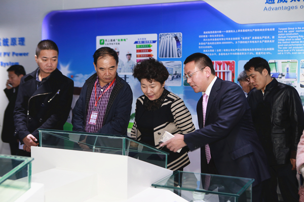 在通威集團(tuán)體驗(yàn)中心,包部長(zhǎng)一行領(lǐng)導(dǎo)、嘉賓詳細(xì)了解了通威集團(tuán)34年發(fā)展歷程。在考察過程中,劉主席向包部長(zhǎng)介紹了通威雙主業(yè)發(fā)展現(xiàn)狀及成果。劉主席表示,通威 “漁光一體”模式將通威兩大核心產(chǎn)業(yè)優(yōu)勢(shì)集中體現(xiàn),實(shí)現(xiàn)了我國(guó)清潔能源與傳統(tǒng)水產(chǎn)養(yǎng)殖轉(zhuǎn)型升級(jí)的有機(jī)結(jié)合,真正實(shí)現(xiàn)了“水上發(fā)出清潔環(huán)保的光伏電力,水下養(yǎng)出健康安全的通威魚”這一目標(biāo)。已投運(yùn)的如東“漁光一體”基地是通威在全國(guó)第一個(gè)真正意義上的“漁光一體”項(xiàng)目,當(dāng)前發(fā)電量超出預(yù)期。