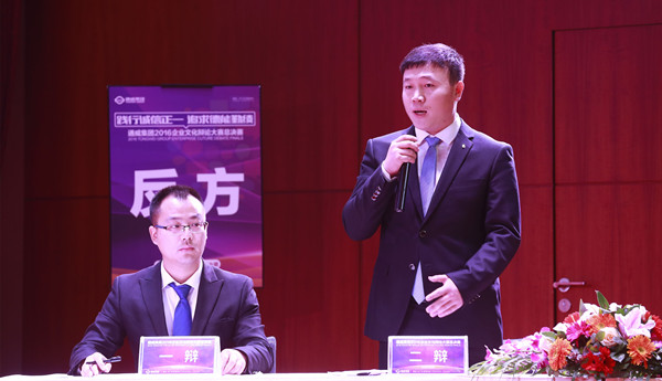 11月2日下午1時50分,第一場企業(yè)文化辯論賽火熱開啟。第一組正方辯論團隊由華東戰(zhàn)區(qū)四位辯手組成,反方由華北戰(zhàn)區(qū)四位辯手組成,雙方的辯題為“企業(yè)用人,員工的忠誠與能力誰更重要?”正方認為,忠誠比能力更重要,如今的飼料行業(yè)競爭激烈,商場如戰(zhàn)場。如果員工不忠誠,企業(yè)如何能用?能力在工作中可以培養(yǎng),但忠誠卻是員工的核心;反方卻認為,企業(yè)用人,能力比忠誠更重要,能力直接為企業(yè)創(chuàng)造效益,進入一個企業(yè)的前提就是能力,一個企業(yè)重忠誠輕能力必將導致人員臃腫、人浮于事。