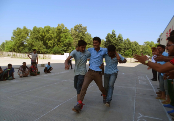 在“齊心協(xié)力”活動中,六組選手背靠背用身體將氣球夾住,積極商討和主動的配合口號聲很快就打破了最初的安靜,加油聲伴著歡笑。比賽分為個人賽和團體賽。個人賽不光考驗運動員的體力與技巧,還有領(lǐng)悟能力。團體賽則體現(xiàn)出了孟加拉通威人的團結(jié)與配合。這里不得不提女員工的表現(xiàn),平日里文靜的財務(wù)部出納因涼鞋影響發(fā)揮,索性赤腳上場,觀眾們異口同聲的為她們計數(shù)“一、二、三、四……五十 !”女員工們節(jié)奏和速度明顯領(lǐng)先于其他隊伍,現(xiàn)場響起陣陣吶喊和助威聲。