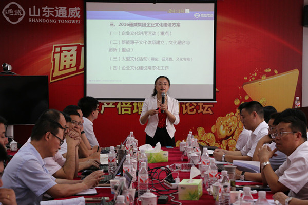 為有效推動華北戰區企業文化建設工作,近日,“2016年華北戰區通威文化暨新能源板塊文化帶動會”在山東通威成功舉行,通威集團工會主席李思宇出席并指導企業文化宣導工作。華北戰區各職能線總監、各公司總經理、市場及畜禽服務經理、財務和品管經理等近60人參會。