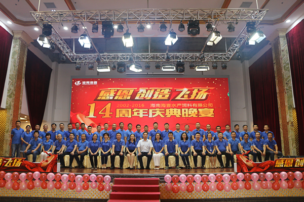9月22日至23日,以“劍鋒出鞘 再展宏圖”為主題的蝦特料片區2016年度工作總結會暨2017年度工作計劃會在海南海壹隆重召開。通威股份蝦特料片區總裁劉明鋒、通威集團工會主席李思宇、通威股份生產部部長陳興偉、品管部部長董秀洪、通威大學執行副校長張紅纓等出席會議,蝦特料片區各職能線總監,片區各公司總經理, 營銷、內務、財務部、市場部及服務部主要負責人共計50余人參會。會議期間,海南海壹舉辦了14周年慶典晚宴,全體與會嘉賓以及海南海壹全體員工出席晚宴。