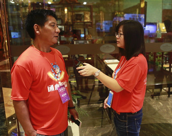 會務組工作人員耐心地為參會人員簽到服務