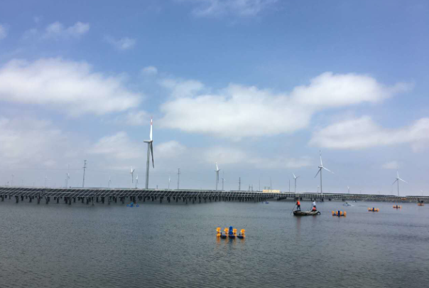 位于江蘇南通“外向型農業綜合開發區”的通威如東“漁光一體”項目,已于去年12月30日并網發電。目前,該漁光一體園區配套組裝智能設施漁業系統、風送投餌設備、代替藥物殺菌電化水設施、底排污水處理系統、智能復合增氧系統、生態濕地凈化系統,有效防止養殖面、內、外源污染,實現養殖節能減排,保障水產品質量安全,打造現代漁業轉型升級示范基地。