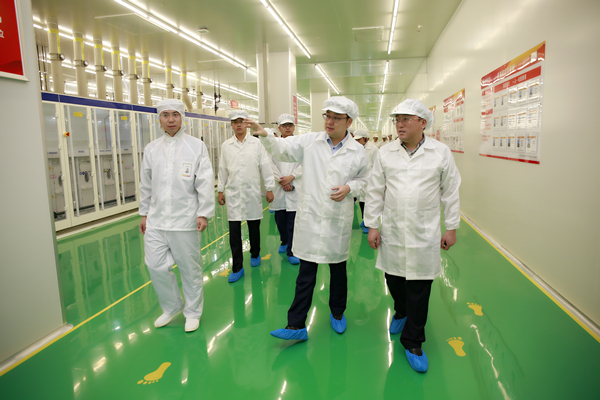 成區(qū)長一行首先來到通威太陽能(成都)有限公司參觀,在S1車間,通威太陽能(合肥、成都)有限公司董事長謝毅向成區(qū)長詳細介紹了公司目前產(chǎn)能情況及通威太陽能電池片生產(chǎn)制作工藝。參觀中,成區(qū)長對通威太陽能(成都)有限公司電池片生產(chǎn)車間制成工序的高度自動化給予了充分認可和高度贊賞。