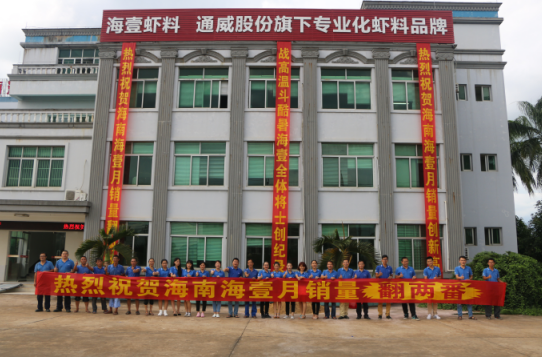 2015年12月下旬,通威股份蝦特料片區總裁劉明鋒親自兼任海南海壹總經理,提出“為夢想而戰,為榮譽而戰”。要求對內夯實基礎、精益求精,用工匠精神打造極致產品;對外主動出擊、快速突破、野蠻增長。在劉總的帶領下,海南海壹上半年新增自動封口機、自動碼包機、新增膨化線等設施設備,繼蝦肝強之后推出蝦肝強B料、金鯧魚特制料以及羅非魚高端料,試行散裝配送。4月10日召開“質量萬里行”大型經銷商會議,6月推行全員營銷、要求人人關注市場,人人服務市場,7月23日啟動“質量利劍行動”……經過一系列的戰略調整和市場出擊,海南海壹在7月迎來初步成效,銷量較去年同期翻番,8月再創新高。