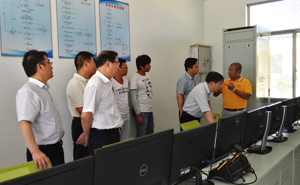 劉用成總經理向趙副市長一行介紹電站發電量情況