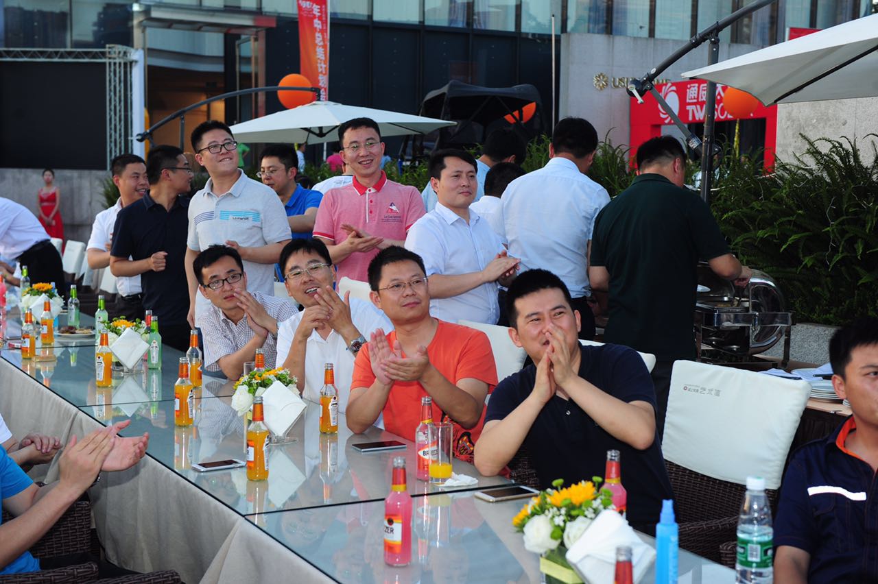會(huì)議結(jié)束后,大家換上便裝,懷著輕松愉悅的心情,來到東湖公園參加“湖·光盛宴”2016上半年精英晚宴。川劇變臉、歐美樂團(tuán)表演、鋼琴演奏……現(xiàn)場一個(gè)個(gè)精心準(zhǔn)備的節(jié)目讓大家直呼過癮。“五、四……一”隨著現(xiàn)場高喊倒計(jì)時(shí),湖面上水幕電影播放起通威太陽能(合肥、成都)公司發(fā)展歷程,大家紛紛掏出手機(jī),留存下自己與公司共同成長的記憶。