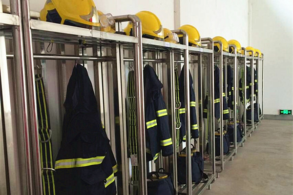 整齊放置的消防隊(duì)?wèi)?zhàn)斗服