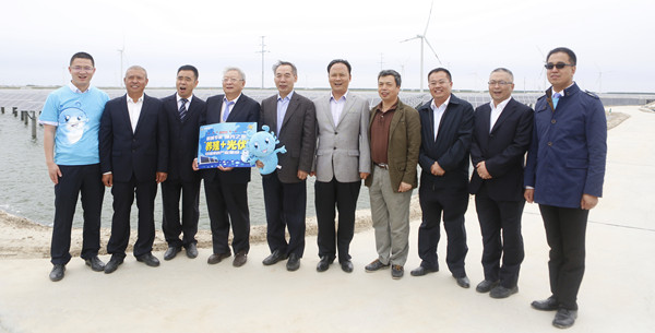 劉漢元主席與李可心副站長一行在如東“漁光一體”基地合影留念