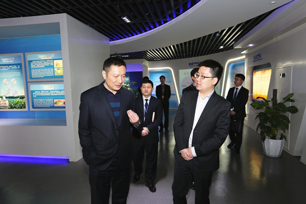 在參觀通威體驗中心過程中,謝董向王董詳細介紹了通威30多年來的發(fā)展歷程,并著重介紹了農(nóng)業(yè)、新能源雙主業(yè)的最新發(fā)展情況和取得的相關成就。王董對通威各板塊的自動化改造與建設,板塊間協(xié)作互贏的模式表示了濃厚的興趣,并一一詢問了通威智能化養(yǎng)殖、“漁光一體”模式等的建設推廣情況。在對通威深入了解之后,王董對通威集團“誠信正一”的經(jīng)營理念、雙主業(yè)齊頭并進的發(fā)展觀以及強烈的社會責任感表示了高度贊賞與肯定。
