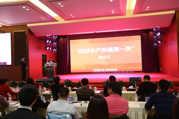郭富華總經(jīng)理宣讀《把好水產(chǎn)養(yǎng)殖第一關》倡議書