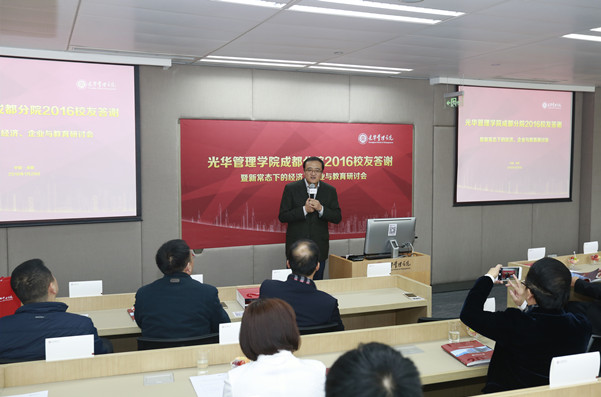 冒書(shū)記指出,過(guò)去、現(xiàn)在、未來(lái),光華管理學(xué)院的成長(zhǎng)都離不開(kāi)廣大校友的關(guān)心,大家的鼓勵(lì)和支持是光華管理學(xué)院前進(jìn)道路上最寶貴的力量源泉。隨后,北京大學(xué)光華管理學(xué)院黨委副書(shū)記、成都分院院長(zhǎng)滕飛博士就成都分院的建設(shè)進(jìn)展與參會(huì)校友分享。