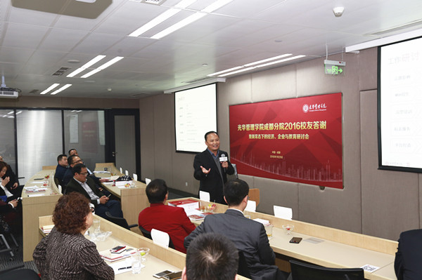 北大光華管理學(xué)院黨委副書(shū)記、成都分院院長(zhǎng)滕飛博士介紹成都分院建設(shè)進(jìn)展