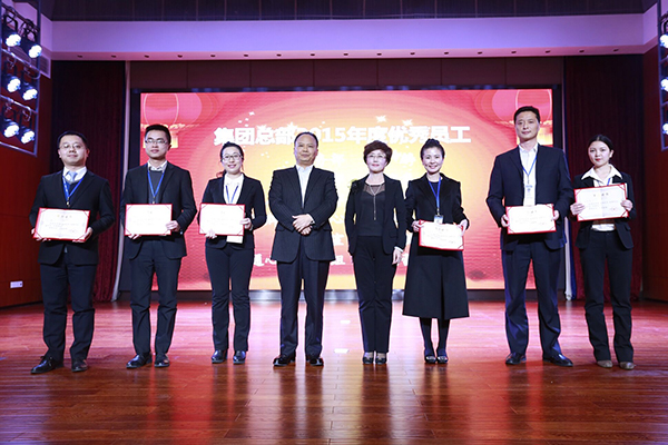劉主席和禚總為2015年度集團(tuán)總部?jī)?yōu)秀員工頒獎(jiǎng)并合影
