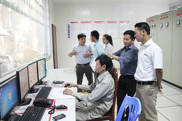 檢查團(tuán)現(xiàn)場檢查組在總控室了解生產(chǎn)情況