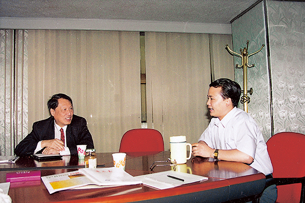 1997年,思危主席到訪通威,聽取劉漢元主席匯報