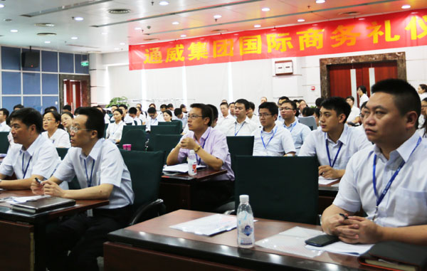 宣貫培訓(xùn)是本次員工形象提升工程的核心工作之一,根據(jù)參訓(xùn)人員的人數(shù),管理總部及入駐通威國(guó)際中心員工共近500人,分6個(gè)批次組織實(shí)施培訓(xùn)。7月3日下午,集團(tuán)人力資源部組織集團(tuán)總部及子公司共百余名員工開(kāi)展了國(guó)際商務(wù)禮儀培訓(xùn)活動(dòng),正式拉開(kāi)了首次培訓(xùn)工作的帷幕。
