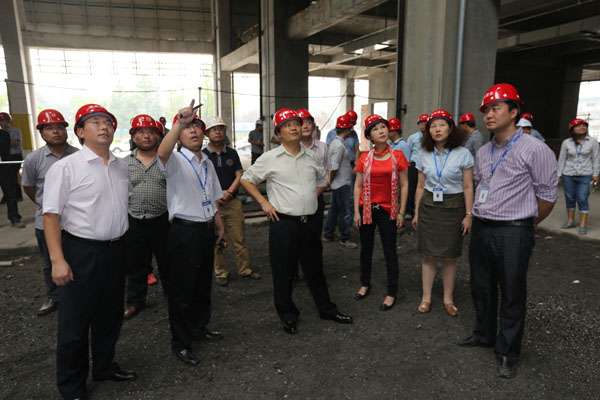 隨后,劉主席、管董事長一行從一樓大廳逐層而上,仔細察看施工情況,對目前空調、消防、弱電等參建單位已經施工完成的“酚醛復合風管”、“橋架”、“消防噴淋管”、“空調水管”等安裝情況與高總及相關施工單位人員進行仔細交流,對相關安裝及施工細節作了詳細了解,同時也對整個工程質量、施工進展等給予了高度關注和明確強調。