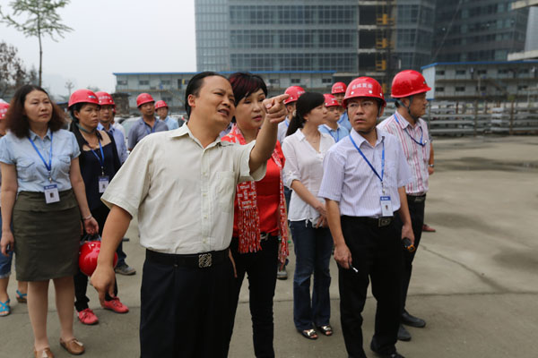 9月18日,在中國傳統節日“中秋節”前一天,十一屆全國政協常委、集團董事局劉漢元主席,集團管亞梅董事長,集團禚玉嬌常務副總裁、黃其剛副總裁等領導一行蒞臨通威國際中心,視察工程建設進展,了解通宇物業工作開展以及招商招租情況,并向正抓緊進行工程施工建設的工程技術人員致以中秋國慶雙節的親切問候,對他們為工程建設所付出的辛勤勞動表示衷心感謝。項目部第一負責人高文閣、通宇物業公司總經理孫總以及工程技術人員、各參建單位主要人員陪同視察。