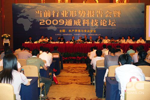 5月17日,由全國畜牧總站、中國飼料工業(yè)協(xié)會、通威股份有限公司共同舉辦的,以“水產(chǎn)養(yǎng)殖與食品安全”為主題、以科技創(chuàng)新為主線的“當前行業(yè)形勢報告會暨2009通威科技論壇”在成都世紀城天堂洲際大飯店隆重召開。中國飼料工業(yè)協(xié)會會長白美清,副會長譚竹洲,農(nóng)業(yè)部畜牧業(yè)司副司長陳偉生,四川省畜牧食品局副局長姜文康,全國政協(xié)常委、通威集團董事局主席、通威股份董事長劉漢元,歐洲水產(chǎn)學會主席Laszlo Varadi博士,中國科學院水生生物研究所曹文宣院士等國內(nèi)外飼料、畜牧、水產(chǎn)行業(yè)及相關領域主管領導、企業(yè)家、知名專家學者出席論壇,共同就當前國內(nèi)外經(jīng)濟形勢、當前我國養(yǎng)殖業(yè)和飼料工業(yè)經(jīng)濟運行形勢等焦點、熱點問題進行探討分析,共襄行業(yè)發(fā)展大計。