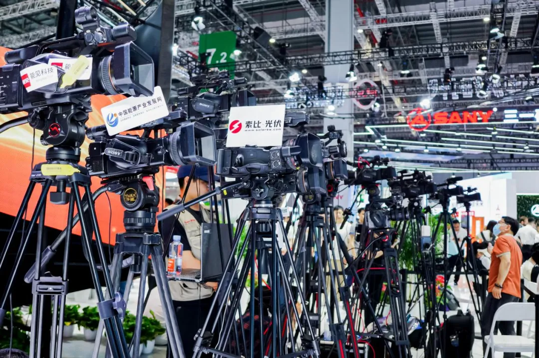 《中國電力報》、《中國能源報》、每日經濟新聞、21世紀經濟報道、《中國企業家》雜志、《華夏時報》、《證券時報》、《時代周報》、《鳳凰周刊》、索比光伏網、能源一號、世紀新能源網、國際能源網、摩爾光伏、趕碳號科技、華夏能源網、財經、財聯社、界面、光伏資訊、光伏們、能源嚴究院、全球光伏、能源圈、《能源》雜志、光伏見聞等50余家主流媒體和行業媒體聚焦通威展臺,現場參觀通威新產品、新技術、新成果,并聯合專訪通威股份光伏首席技術官邢國強博士。此外,邢國強博士還現場接受了央視、彭博社、界面新聞等權威媒體的專訪,就光伏技術創新、未來技術方向等熱點話題闡述了精彩觀點。