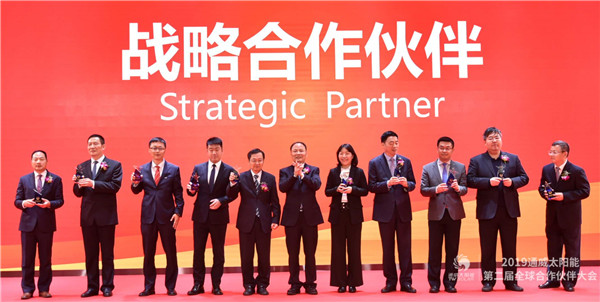 大會還為長期以來支持、幫助通威太陽能發展,為通威太陽能提供優質產品及服務的供應商進行了頒獎,28家供應商分別獲得“最佳服務獎”、“卓越品質獎”、“成本貢獻獎”,隆基綠能科技股份有限公司、天津環歐國際硅材料有限公司、保利協鑫能源控股有限公司等10家供應商被授予“戰略合作伙伴獎”。
