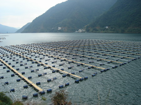 “豬肉0.99一斤時,成都的鯉魚價格是每斤13到15元,是豬肉價格的10到15倍。上世紀八十年代時,四川雖然已是水產大省,但人均一年只有半斤魚。哪個單位逢年過年能分到一條魚,要算后勤部門的人很有能耐?!闭强吹街袊顺贼~難的現狀,讓劉漢元開始探索高效養殖方法:1983年初他開始了在眉山永壽永光水電站的尾水河渠進行渠道金屬網箱式流水養魚技術的試驗,即在渠道流水里修建兩個金屬攔網,在網箱里進行相對高密度的養殖。