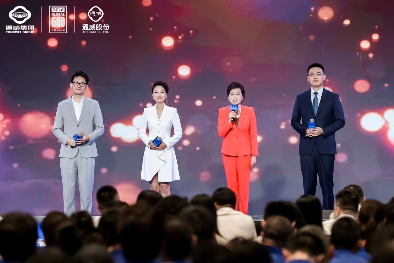 當天,通威集團管亞梅董事長,通威股份董事長、CEO劉舒琪,四川廣播電視臺十佳主持人楊旭 、劉波林、田川、劉源、宋晨,成都電視臺主任播音員袁莉,成都電視臺金牌主持人趙亮、王安冉,通威股份農牧總裁、通威農發總經理郭異忠,通威集團副總裁胡榮柱,通威集團黨委書記、副總裁、集團企業文化建設專項工作小組執行組長黃其剛,通威股份副總裁、永祥股份總經理李斌,通威股份光伏首席技術官邢國強,通威集團財務總監肖吉華,通威股份總裁助理、通威太陽能科技總經理蕭圣義,通威集團黨委組織委員、通威股份人力資源總監易繼成,集團企業文化建設專項工作小組執行副組長、通威股份行政總監馮暢,通威股份金融總監邱艾松,通威太陽能總經理周華,通威食品總經理陳波等領導,以及璉升光伏等川聯光伏產業商會部分會員企業嘉賓出席大會。通威集團管理總部、通威股份管理總部、通威農發、永祥股份、通威太陽能、通威太陽能科技、通威新能源、通威食品、通威地產、通威微電子、好主人寵物食品、通宇物業、通威傳媒、通威商管等600余人現場參會,全球通威人通過線上直播觀看大會盛況。